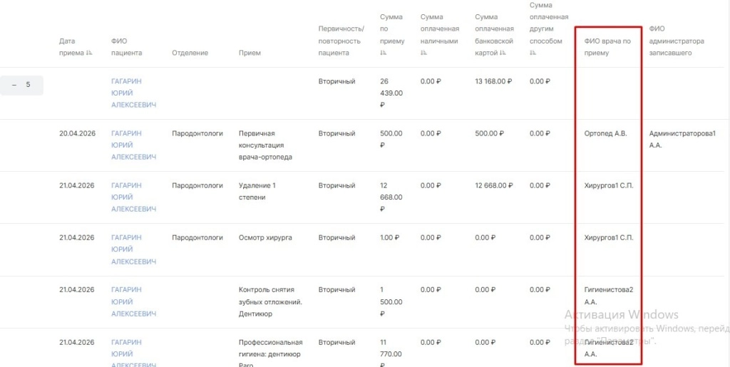 “ФИО врача по приему” подтягивает информацию по ФИО врача, который проводил прием