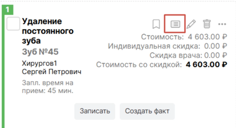 После сохранения изменений новая стоимость приема отобразится в плане лечения