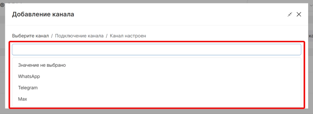 выбираем доступный тип канала коммуникации