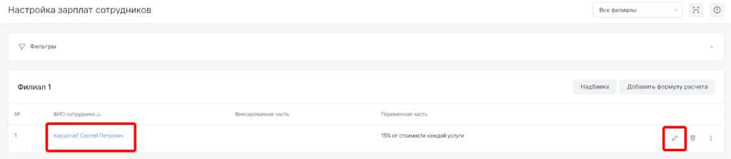 в списке выбрать необходимого сотрудника для настройки и нажать “Редактировать”
