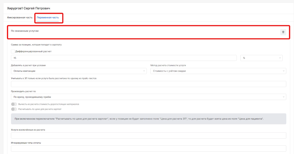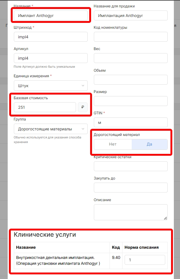 указать в поле “клинические услуги” ту услугу, при проведении которой должен производится вычет закупочной стоимости