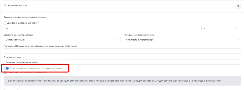 включить опцию “Вычесть из расчета стоимость дорогостоящих материалов”