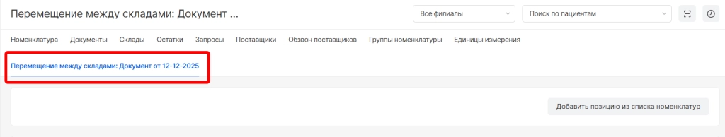 Внимание! При работе с новым документом на складе, он будет отображаться последним разделом до завершения работы над ним. Данная особенность позволяет быстро перейти к созданному документу и работать над документом в течении рабочего дня.