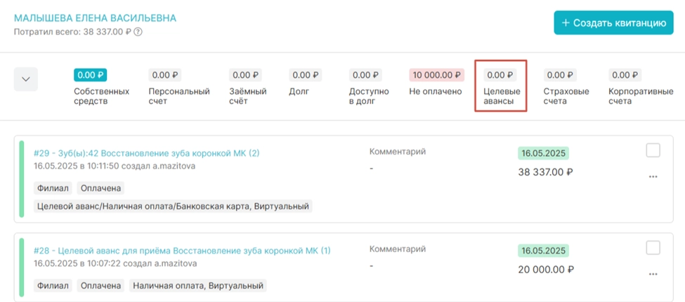 Оплата приема целевым авансом (Версия программы Лайт с 16)