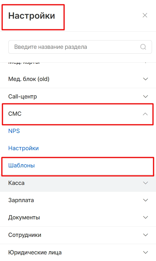 После настройки данных параметров необходимо настроить шаблон смс сообщения для отправки.Для этого необходимо перейти в модуль «Настройки» - «СМС» - «Шаблоны».