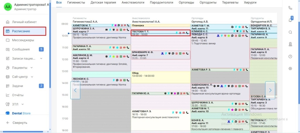 Для создания титульного листа в модуле «Расписание» необходимо один раз кликнуть на запись пациента.