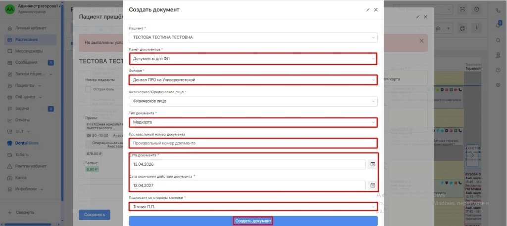 После заполнения полей необходимо нажать «Создать документ».