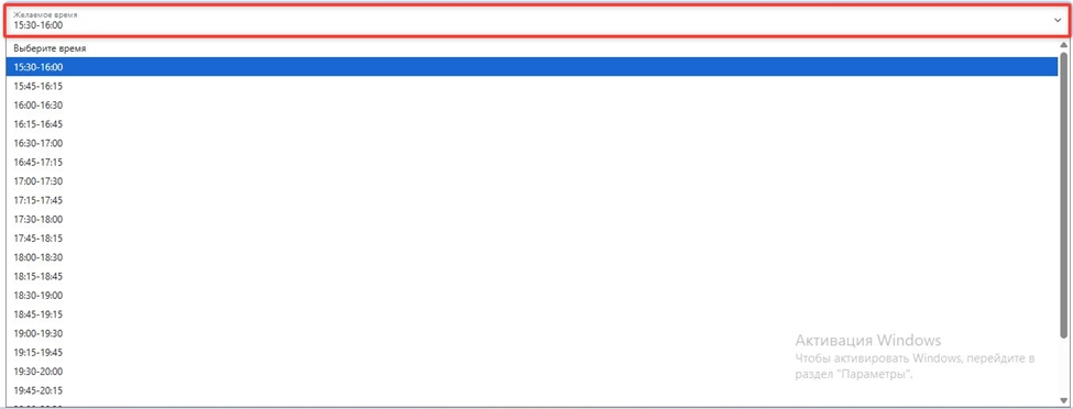 Внимание! В данном разделе отобразятся только свободные даты и время.