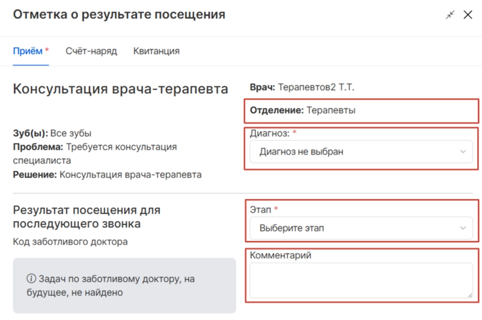 Этап заботливого доктора (постановка задачи администраторам, чтобы пациент не потерялся и ему могли позвонить и уточнить по предложенному плану лечения)