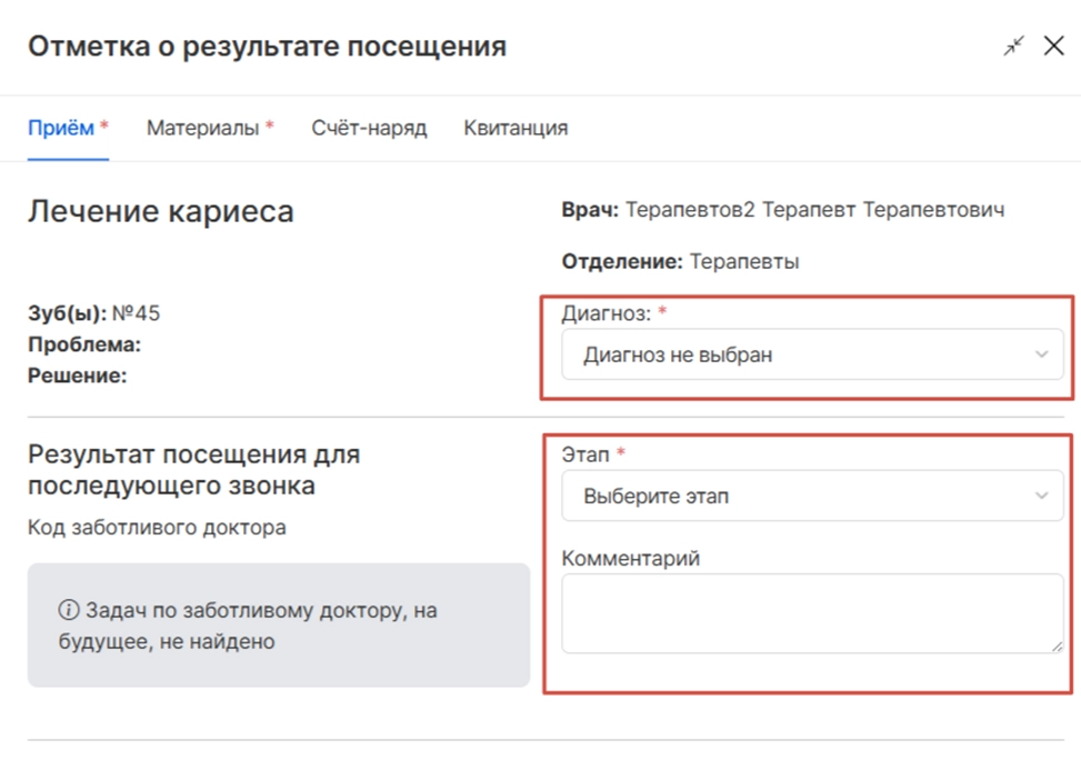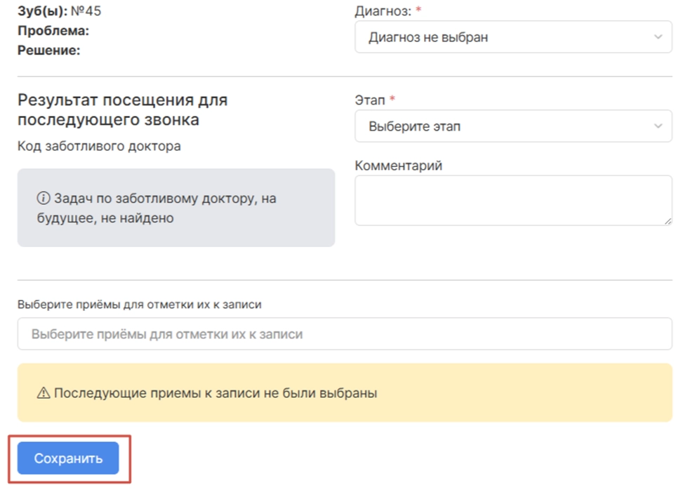 Этап заботливого доктора (постановка задачи администраторам, чтобы пациент не потерялся и ему могли позвонить и уточнить по предложенному плану лечения)