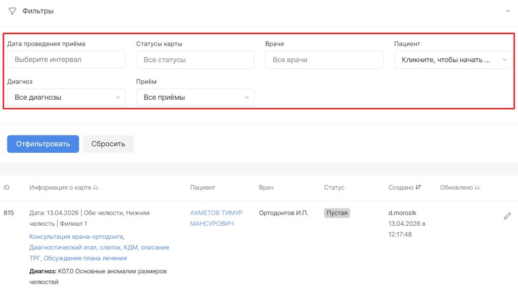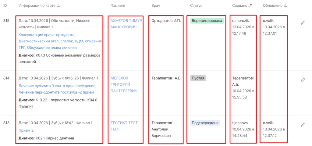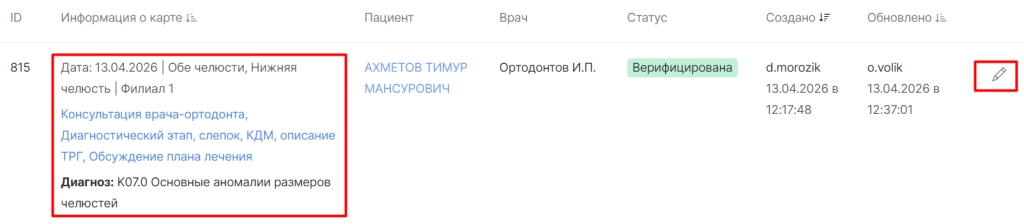 ● ФИО создателя изменений в карте.