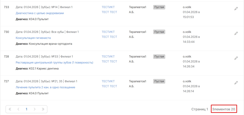 Чтобы открыть карту для заполнения, чтения, печати или проверки, необходимо нажать на наименование приема или опцию “Редактировать”.