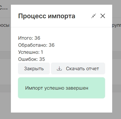 Когда импорт будет завершен отобразится соответствующее уведомление