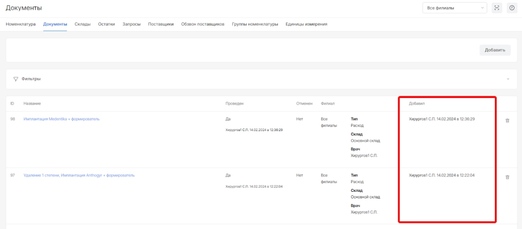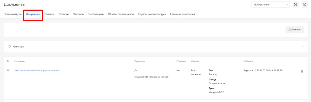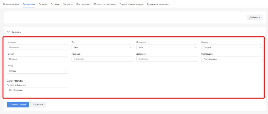 Раздел “Документы” - это основной раздел модуля “склад” для фиксации движений по складам.