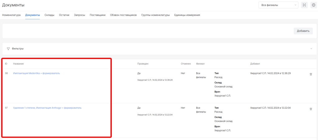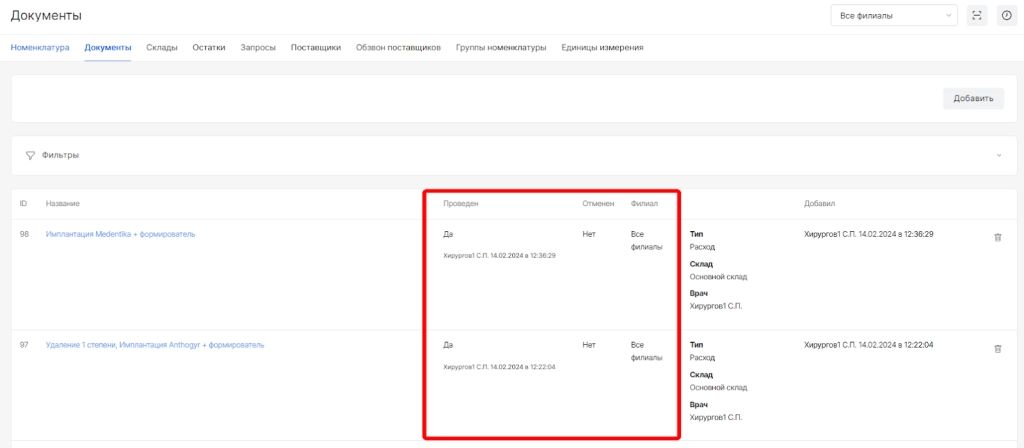опция просмотра документа (доступна только для проведенных документов)