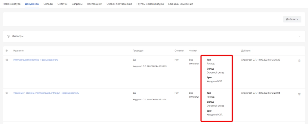 тип документа и движения