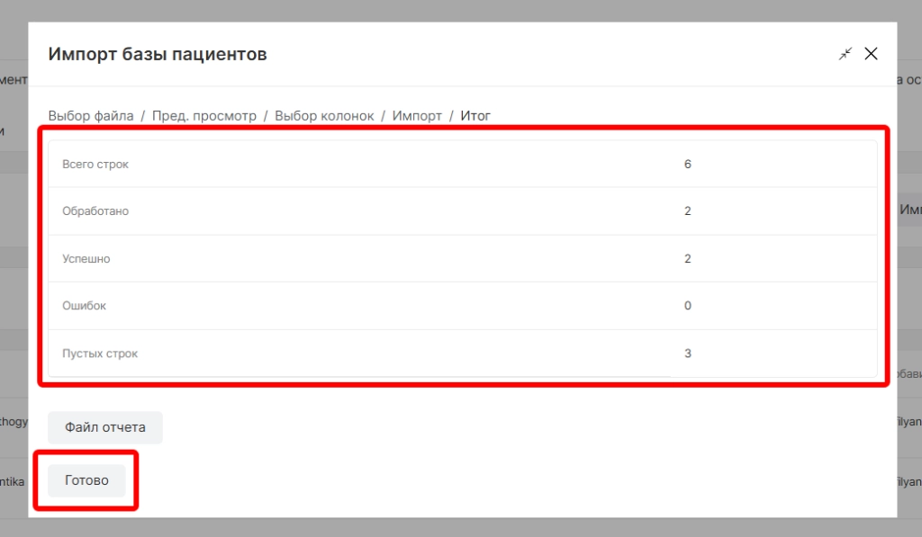 Начинается процесс загрузки данных с возможностью скачать "Файл отчета загрузки".