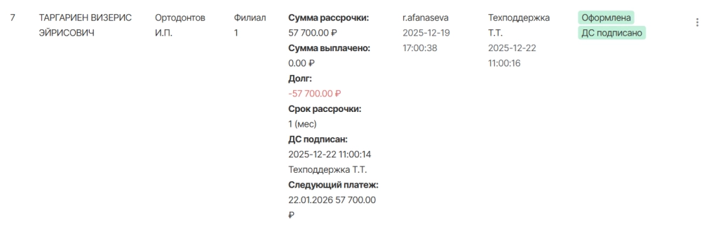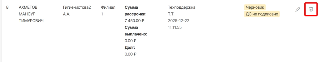 в разделе “Рассрочка” модуля “Касса” необходимо найти ошибочно оформленную рассрочку