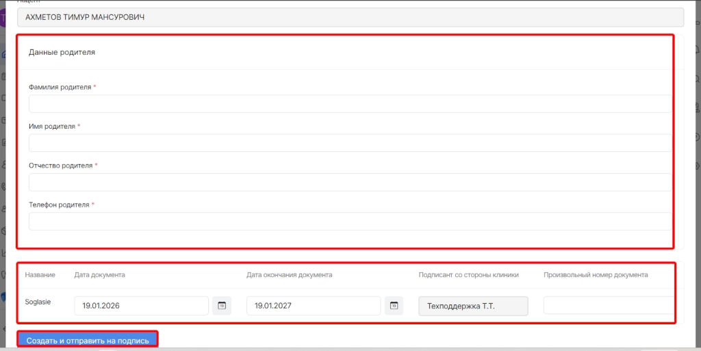 После отправки указанный родитель или законный представитель пациента получает смс с документами и подписывает их