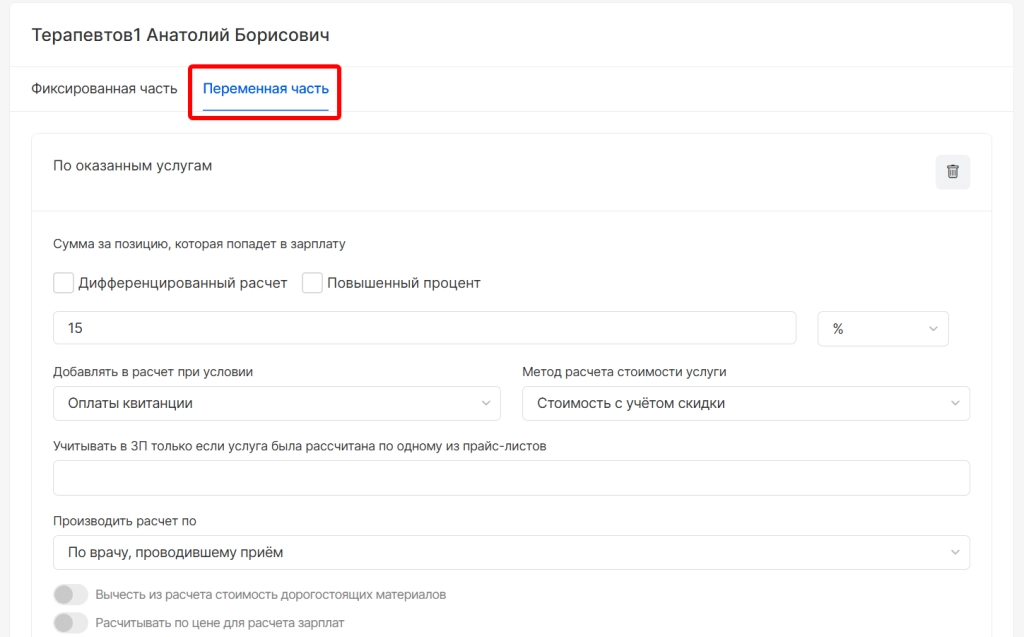 1. Добавили возможность начисления в заработную плату ставки за пациентов по рекомендации от доктора. Для использования функционала необходимо перейти в модуль “Зарплаты” и “Настройка расчета зарплат”.