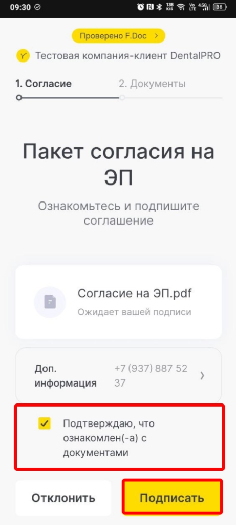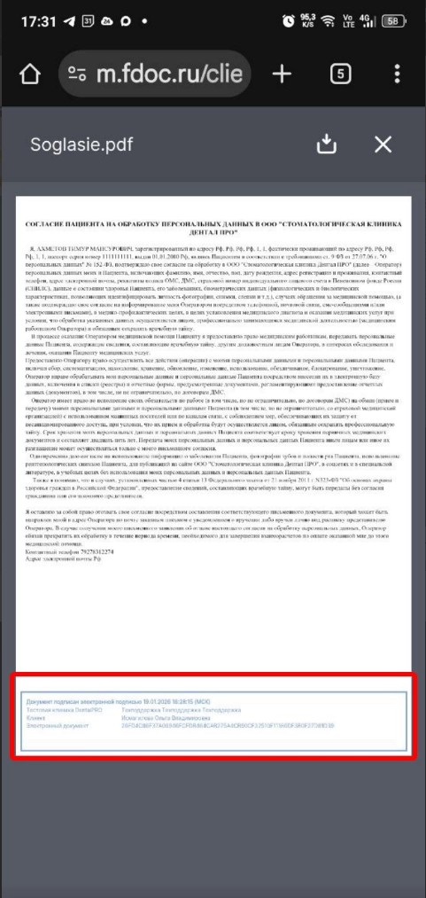 Подписанный документ будет содержать штамп подписи с ФИО родителя или законного представителя пациента
