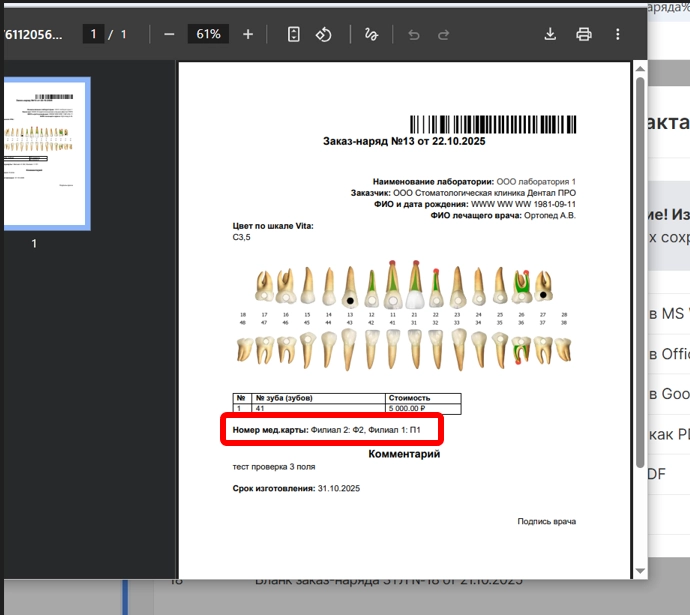 1. Добавили настройку колонок для тега бланка зуботехнической лаборатории