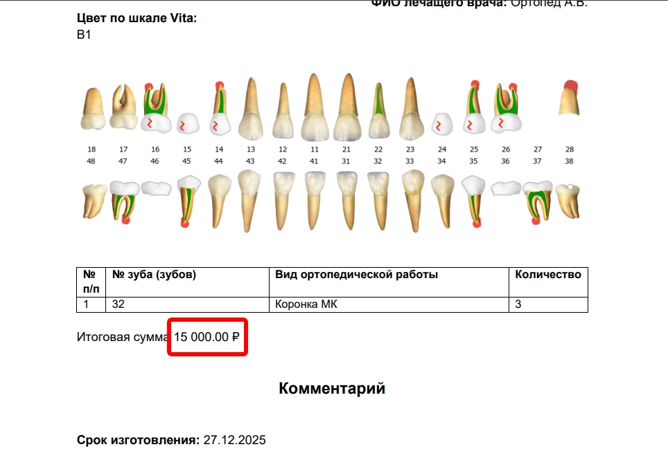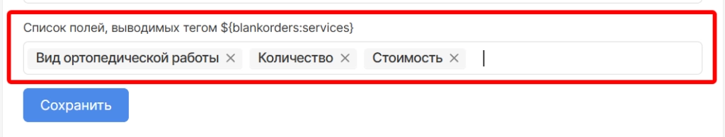 3. Для шаблона бланка зуботехнической лаборатории добавили новый тег ${blankorders:services_cost_sum} , позволяющий отображать общую стоимость услуг
