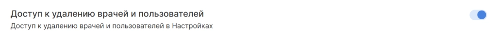 - Добавили новую привилегию, позволяющую включать или отключать у сотрудника доступ к удалению пользователей и врачей