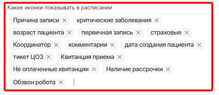 Добавили возможность скрытия иконок DentalBot из отображения в расписании. Для этого необходимо в модуле “Настройки отображения” в поле “Какие иконки показывать в расписании” исключить иконки “Обзвон робота”