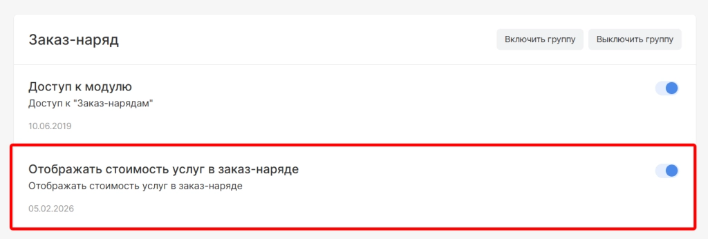 При выключенной опции при создании заказ-наряда и печати бланка для группы пользователей не будет отображаться колонка со стоимостью услуги лаборатории