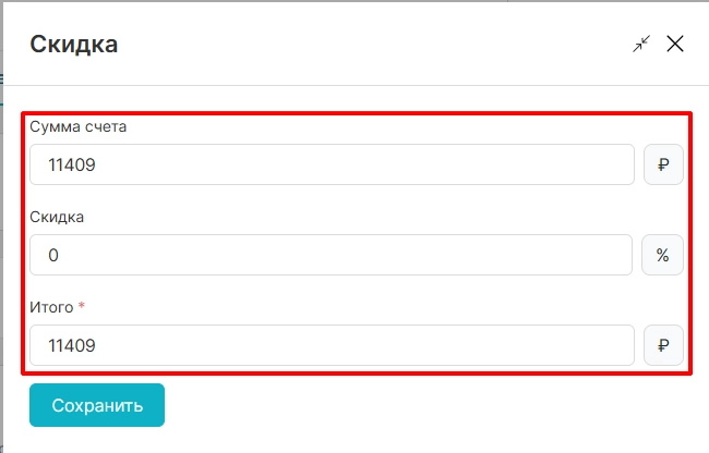 применение скидки на счет
