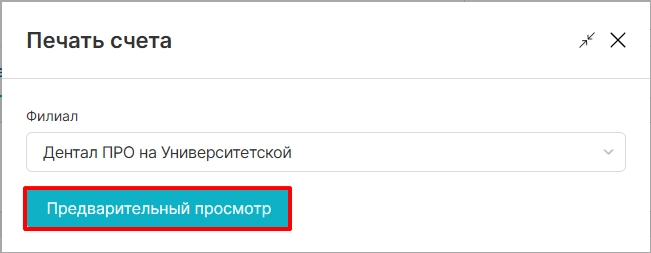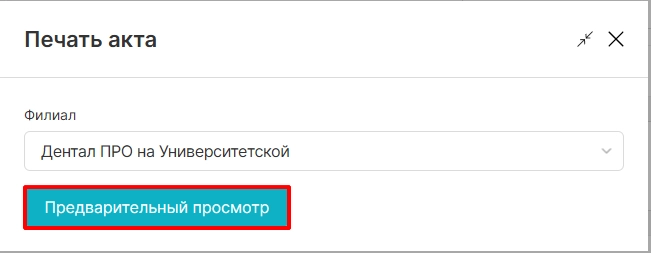 печать акта по счету