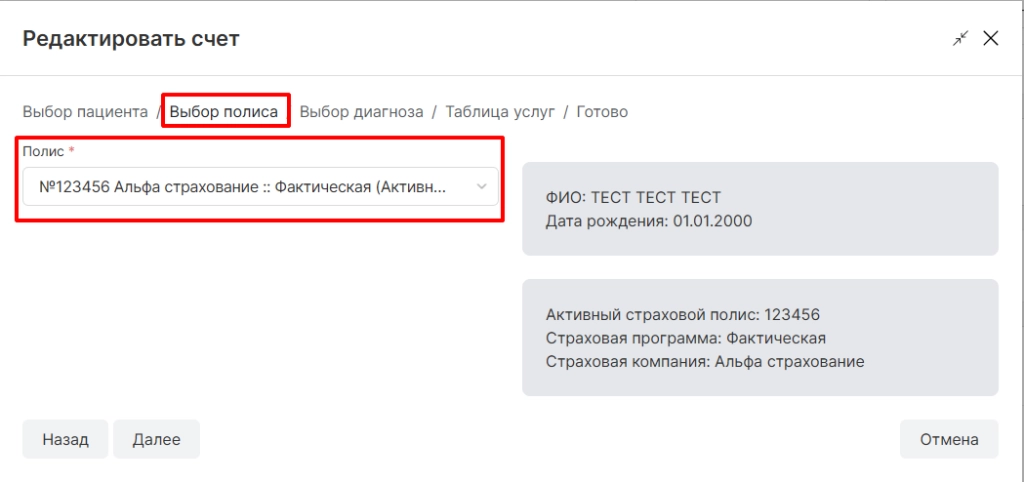 полис пациента