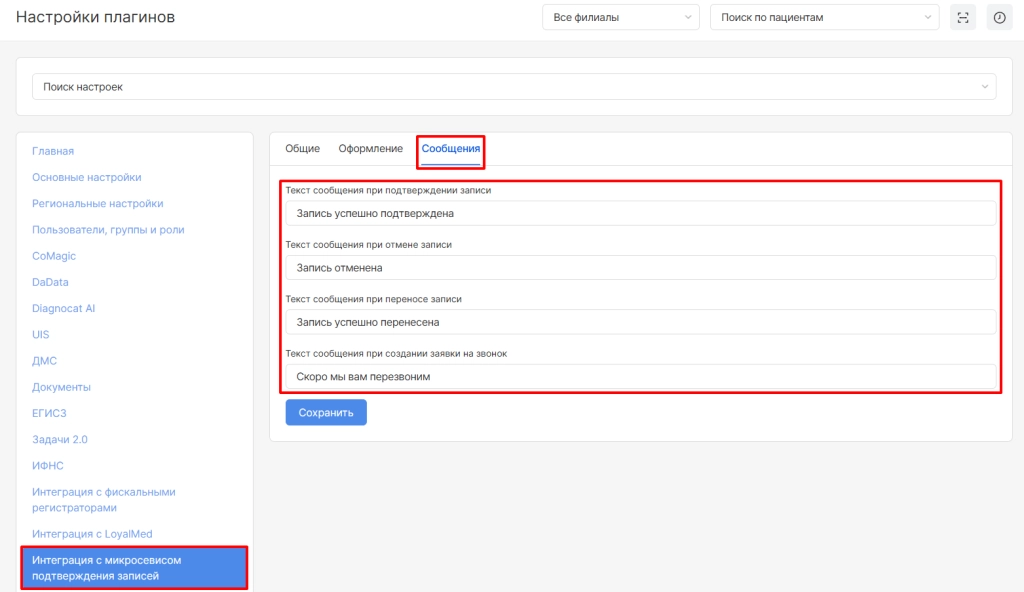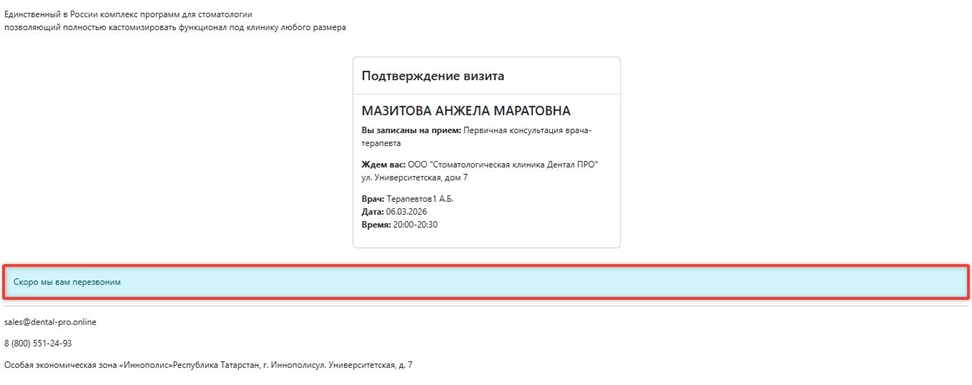 Внимание! Текстовки, которые отображаются после подтверждения, отмены, переноса и создания запроса на звонок можно изменить. Для этого необходимо обратиться в Техническую поддержку.