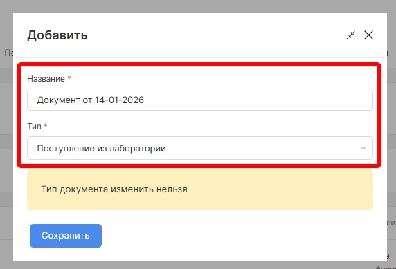 Тип документа “Поступление из лаборатории”, создаваемый вручную (Версия программы Лайт с 16)