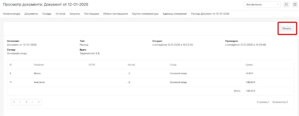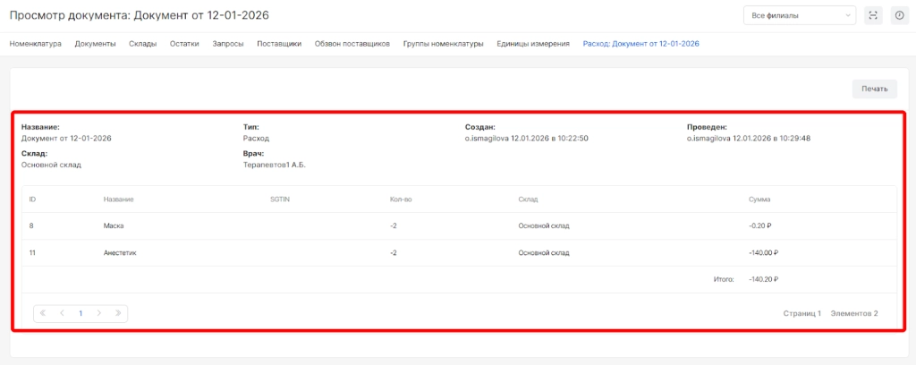 После сохранения с проведением откроется просмотр документа