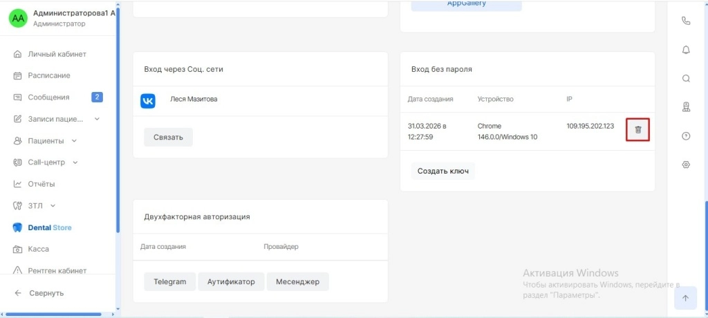 Данное устройство можно отвязать, кликнув кнопку “Корзина”.