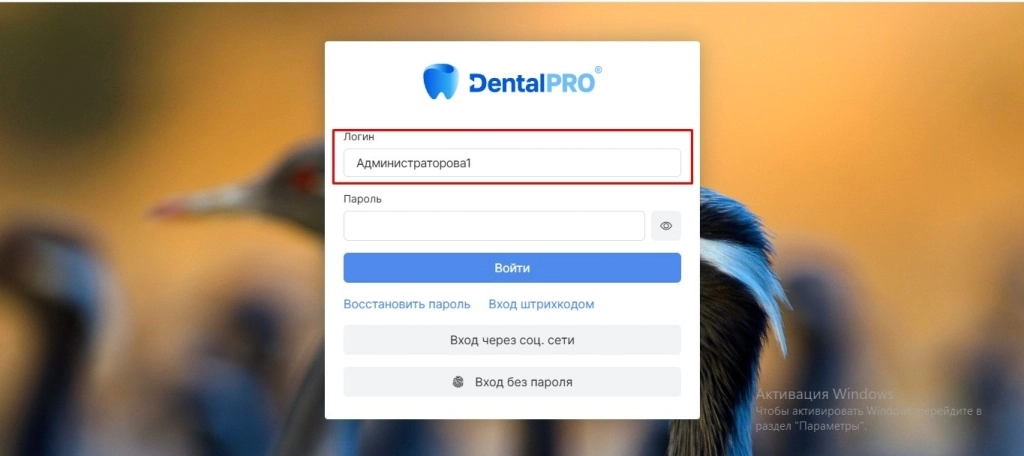 При входе в систему в окне авторизации, необходимо ввести свой логин.