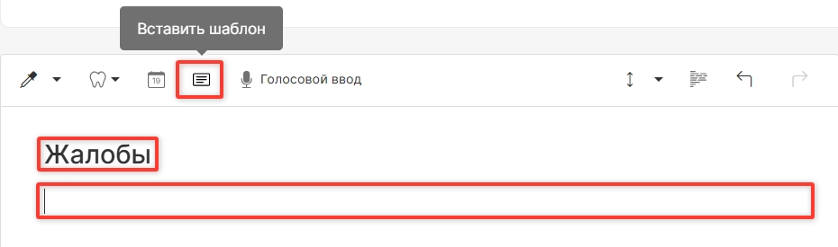 Содержание выбранного шаблона отобразится в уже имеющемся шаблоне амбулаторной записи.