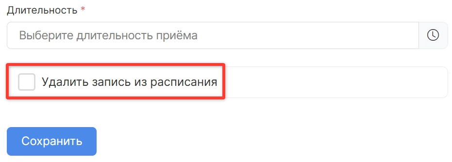удалить запись из расписания (если пациент просит удалить его запись, но позвонить, если освободится слот раньше, для удаления активной записи из «Расписания» поставьте галочку в указанном поле).