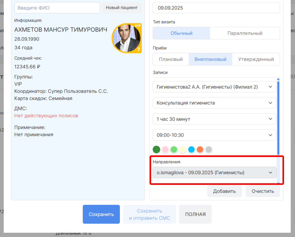 Дополнительно созданные направления отобразятся во вкладке "Направления" инфокарты пациента