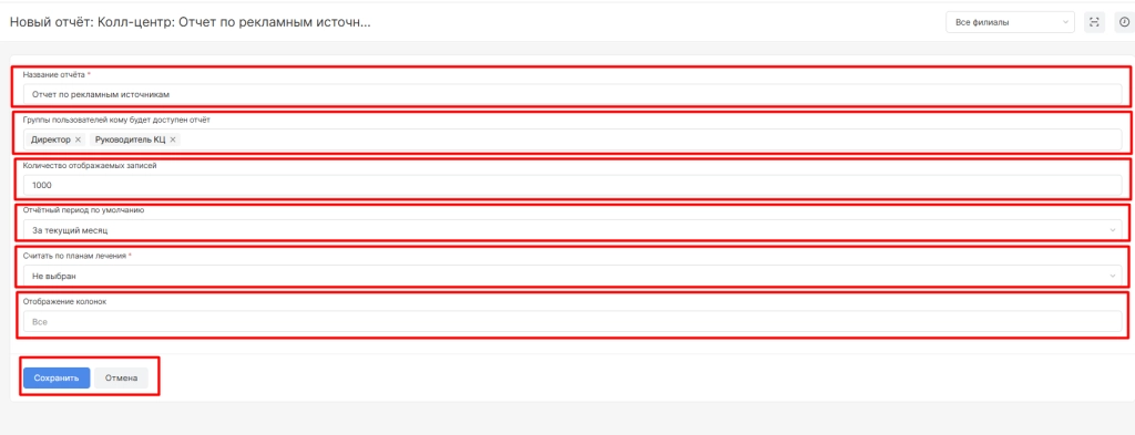 Для удобства в данном отчете предусмотрены поля фильтрации, позволяющие формировать отчет по желаемым параметрам. Например: